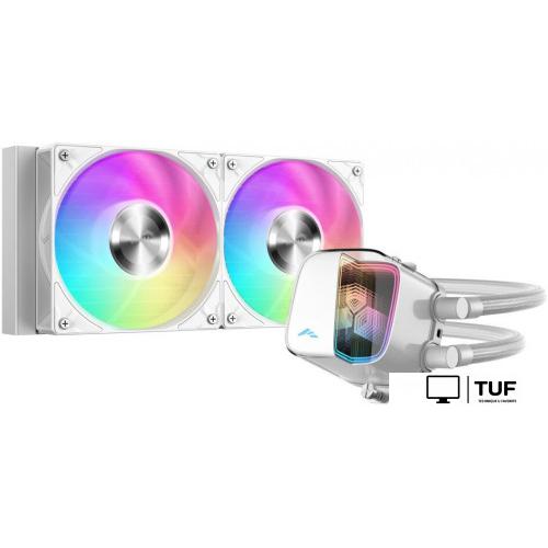 Модель выделяется сочетанием высокой производительности и эстетики благодаря ARGB-подсветке вентиляторов и водоблока, что позволяет создавать индивидуальный стиль сборки. Надежная работа обеспечивается трехлетней гарантией и использованием современных технологий, включая гидродинамические подшипники и улучшенный алюминиевый радиатор.
