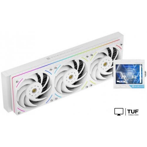 Система жидкостного охлаждения для процессора с радиатором длиной 397 мм и тремя 120-мм вентиляторами обеспечивает высокую эффективность отвода тепла. Поддерживает современные сокеты Intel и AMD, оснащена алюминиевым радиатором и ARGB-подсветкой с подключением по 3-pin 5V. На водоблоке установлен полноцветный 3.5-дюймовый дисплей с разрешением 640×480 для отображения информации.