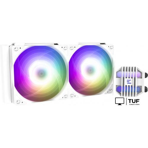 Модель выделяется высокой производительностью за счет керамического подшипника помпы и гидродинамических подшипников вентиляторов, а также ARGB-подсветкой, синхронизируемой с большинством материнских плат. Использование антивибрационных прокладок обеспечивает дополнительную тишину работы, а длина трубок 400 мм делает монтаж гибким для различных корпусов.