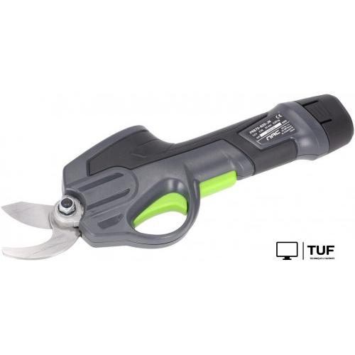 Компактный аккумуляторный секатор предназначен для обрезки веток и формирования кустарников, подходит для ухода за садом и декоративными растениями. Весит менее 1 кг, стандартная максимальная толщина среза составляет 18 мм, а максимальная раскрываемость лезвий - до 25 мм. Оснащён литий-ионным аккумулятором 7.2 В ёмкостью 2.0 А·ч, который обеспечивает до 800 резов при толщине веток 8 мм.