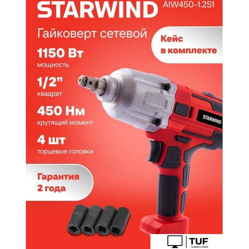 Гайковерт Starwind AIW450-1.2S1 рассчитан на задачи, где вручную работать уже неудобно. Это сетевой инструмент мощностью 1150 Вт с крутящим моментом до 450 Н·м, который подходит для работы с резьбовым крепежом, обслуживания автомобиля и монтажа конструкций. Подключение к электросети избавляет от пауз на зарядку, поэтому гайковерт удобен для длительной работы в гараже, мастерской или на объекте.