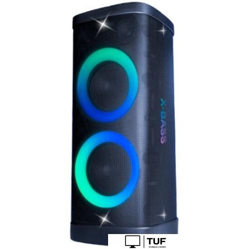 Портативная акустическая система с поддержкой Bluetooth 5.0, двумя 8-дюймовыми низкочастотными и двумя 2.5-дюймовыми высокочастотными динамиками, частотным диапазоном 30 - 22000 Гц и аккумулятором емкостью 9000 мАч рассчитана на проведение вечеринок, караоке и мобильные развлечения. Устройство оснащено защитой от брызг по стандарту IPX4, LED-подсветкой и FM-радио.